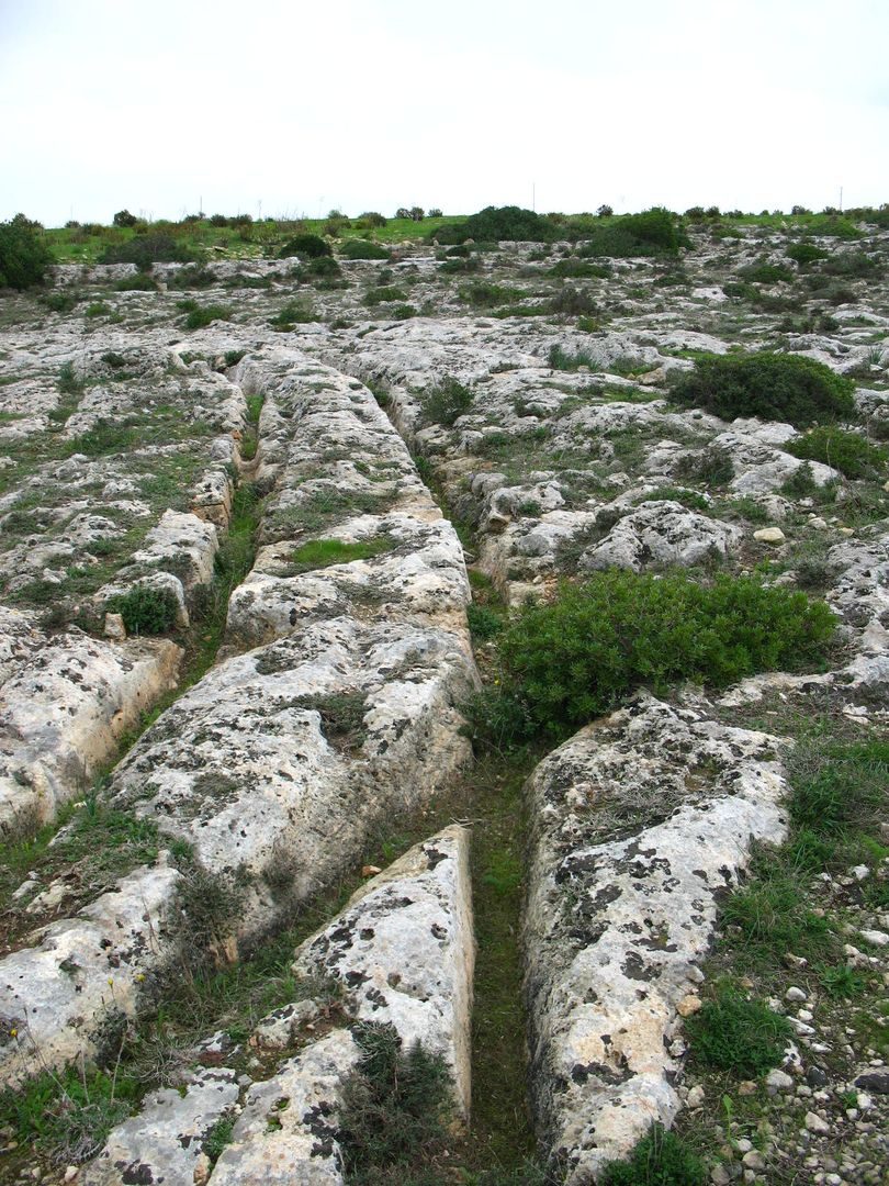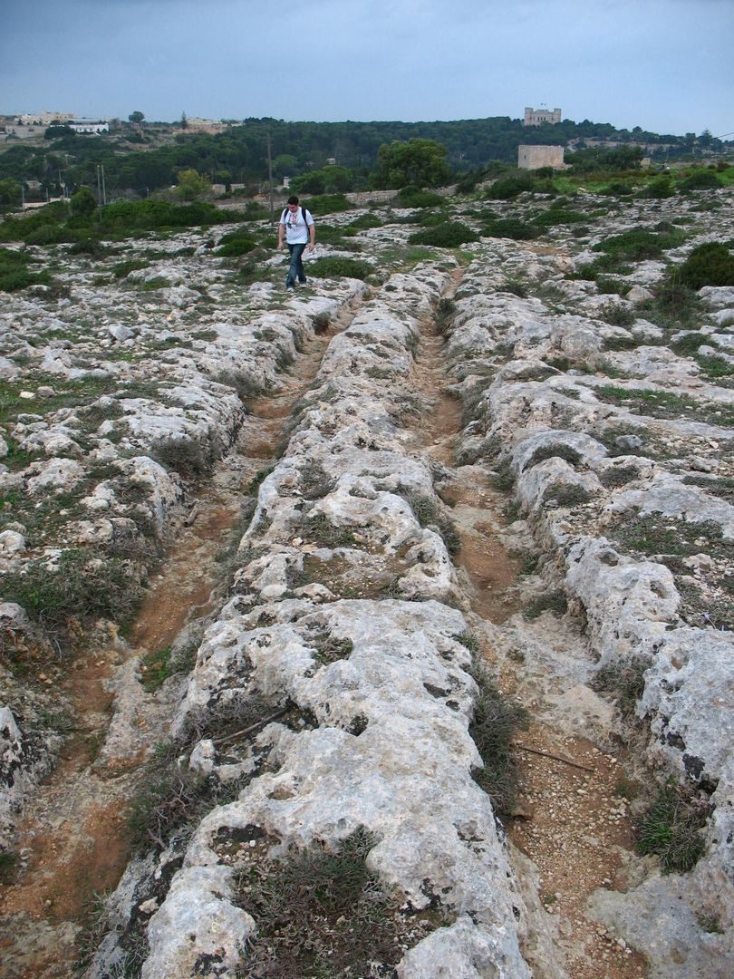 Hierbei handelt es sich um bis zu knietiefe Furchen, die parallel zu einander verlaufen und sich in das weiche Kalkgestein geschliffen haben. Sie können mitunter mehrere hundert Meter lang sein. Ihr Alter lässt sich nur schwer bestimmen. Man geht aber davon aus, dass sie aus der maltesischen Bronzezeit (2300 – 100 v.Chr.) stammen könnten, da sie an zahlreichen Orten direkt auf die Siedlungen dieser Zeit zulaufen.