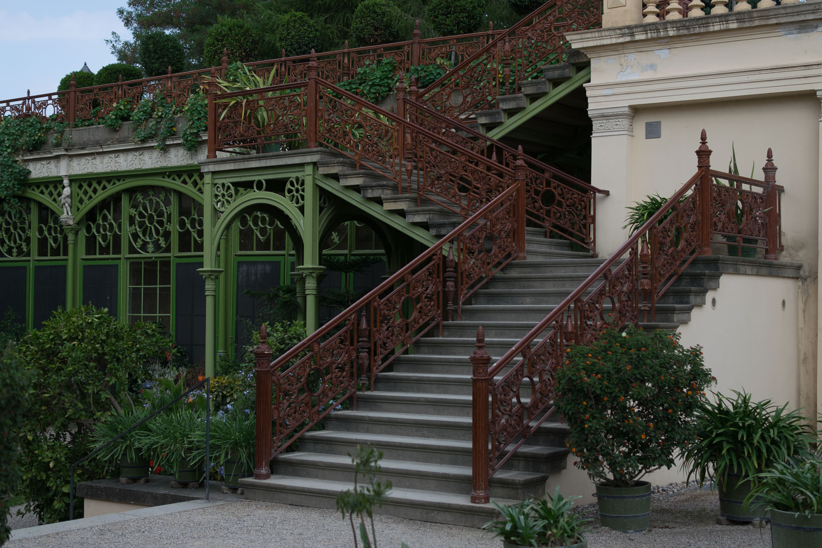 Die Freitreppen von den Terrassen zu den Grünanlagen, die 1994 wieder errichtet wurden, verleihen der Orangerie zusätzlich ein verträumtes und verspieltes Ansehen. In der kalten Jahreszeit wurden hier die empfindlichen Pflanzen des Schlossgartens untergebracht. Heute befindet sich in der Orangerie eine Gastronomie mit herrlichem Ausblick.