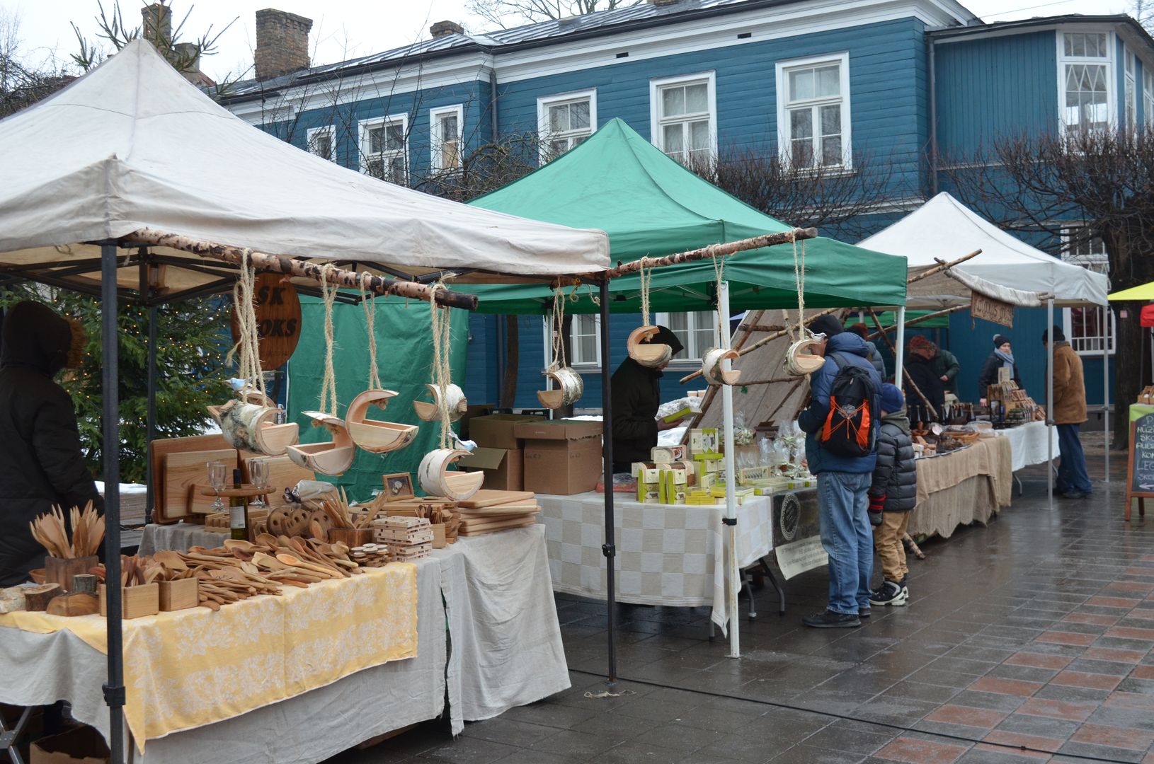 Jeden Samstags von 10 bis 16 Uhr findet in der Kalnciema Straße im Stadtteil Pardaugava – “jenseits der Düna“, an der auch schön restaurierte Holzhäuser stehen, der wöchentliche Markt statt. Hier findet man ausschließlich lokal hergestellte Produkte und garantiert keine Massenware. Hier kann man sich von einem zum nächsten Marktstand durchschlämmen. Von Brot, Gemüse, Fisch, Kaviar bis selbstgebackenem Kuchen oder Sklandrausis, Kochutensilien aus Holz oder die berühmten bunt gestrickten Handschuhe, hier bekommt man alles.