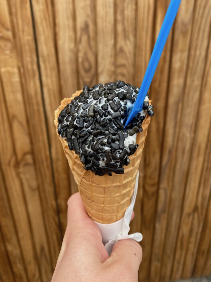 - Eigentümlich: Lakritzeis mit Salmiakstreuseln
