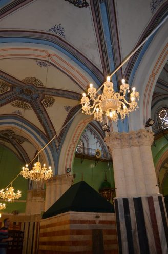 Wir betreten die Machpela, auch das Grab der Patriarchen genannt. Eine der wichtigsten Stätten des Judentums. Es sind die Ruhestätten von Abraham, Isaak und Jakob sowie ihrer Frauen Sara, Lea und Rebekka. Da sich aber auch die Muslime auf den Stammvater Abraham beziehen, ist auch ihnen diese Stätte heilig. Genau dies führte immer wieder zu blutigen Auseinandersetzungen, die 1994 mit dem Massaker des jüdischen Siedlers Baruch Goldstein (er erschoss 29 Muslime beim Beten) ihren Höhepunkt erreichten. Die Machpela ist heute getrennt in einen jüdischen und einem muslimischen Teil.