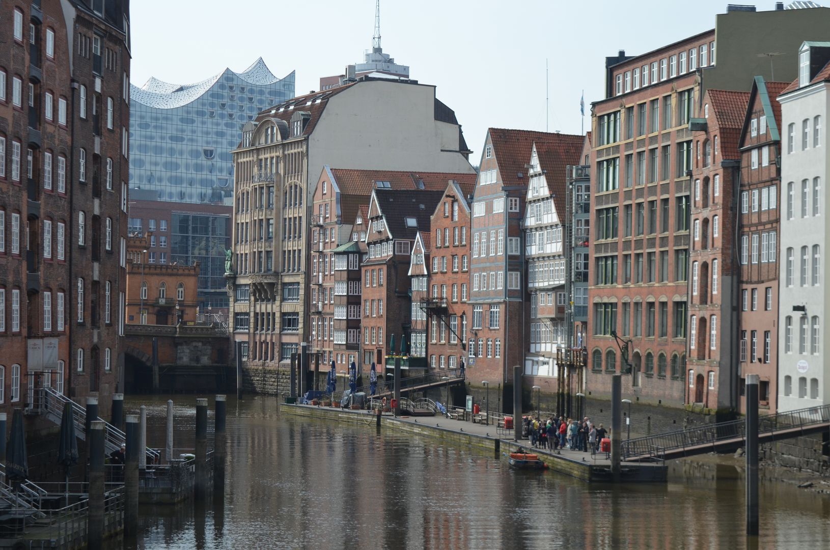 Eine Zeitreise für die Augen bildet der Blick hinüber auf die jüngere Speicherstadt und die moderne Elbphilharmonie.