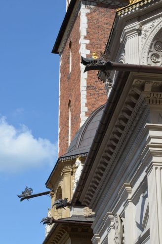 Happy End: der Schusterjunge durfte natürlich die Prinzessin heiraten. Vom König Krak leitet sich der heutige Name Krakau ab. Und Drachen findet man übrigens heute überall in der Stadt, man muss nur genau hinsehen!