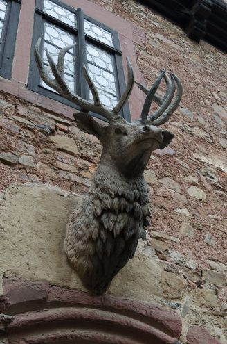 Folgt man dem Rundgang, so gelangt man in die oberen Stockwerke, in denen sich die prächtig gestalteten Zimmer mit Jagdwaffen, gedeckten Tafeln, reich verziertem Mobiliar und alten Gemälden befinden.