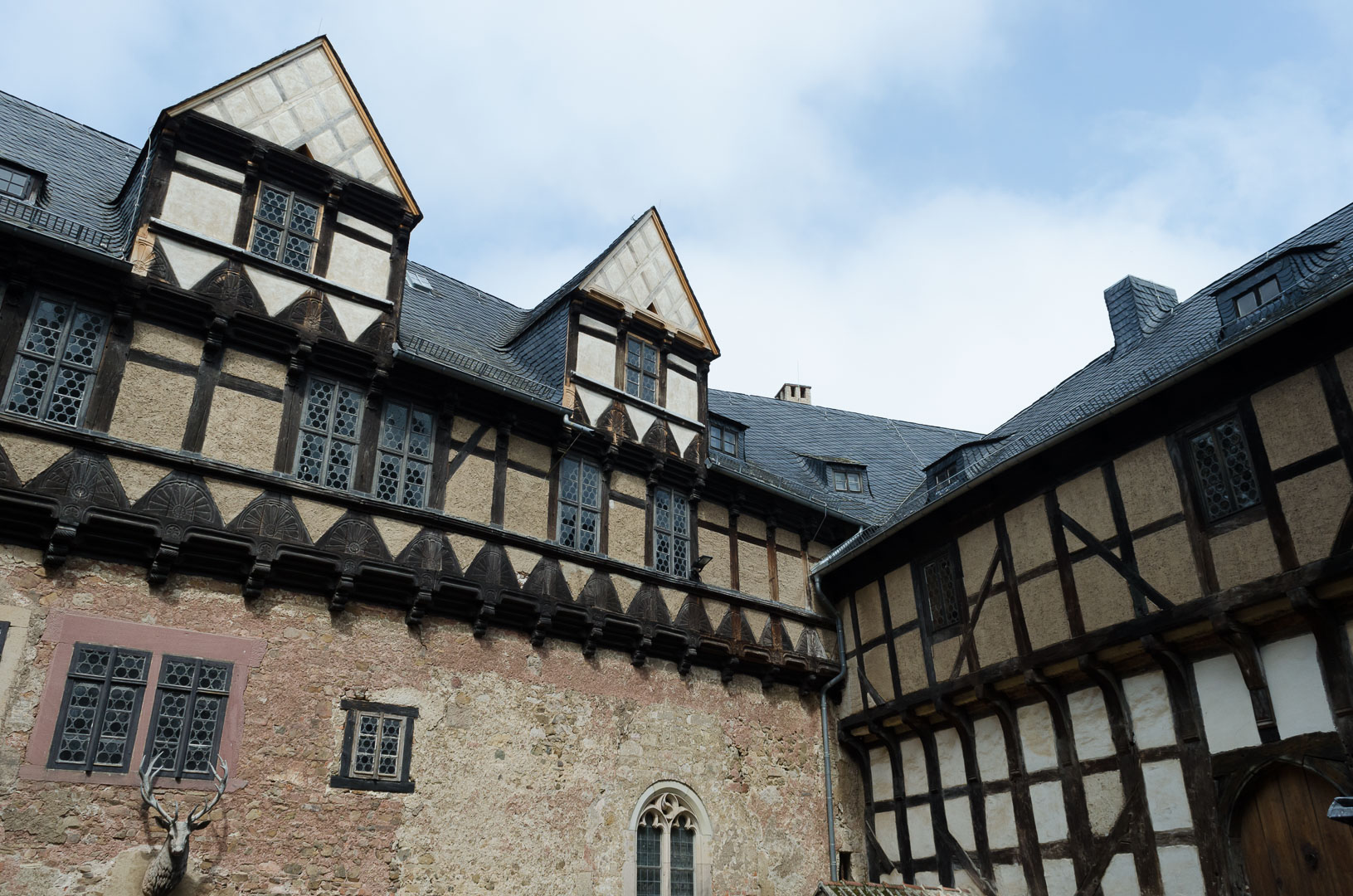 Hier ist man wirklich angekommen im Mittelalter. Es wundert kaum, dass hier zu DDR-Zeiten schon diverse Märchenfilme gedreht wurden, denn man wird in eine andere Zeit katapultiert. Türme und Gebäudeflügel mit wunderschönem Fachwerk umschließen den Innenhof, niedrige Eingänge zu den einzelnen Gebäudeteilen führen in die alte Küche und in Lagerkeller.