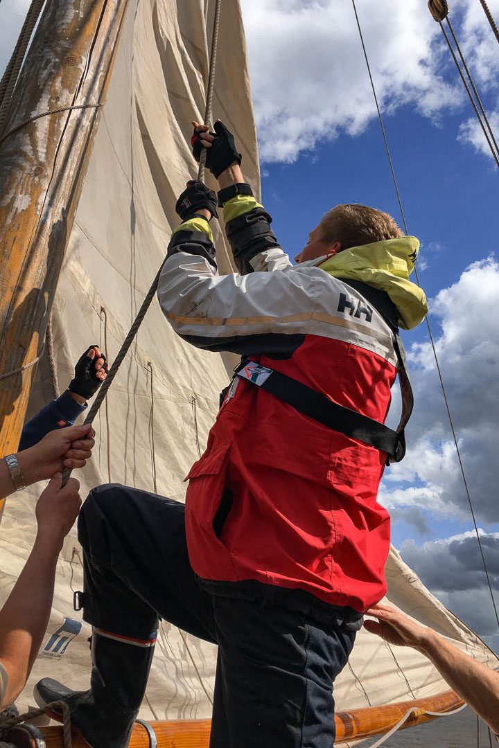 - Beim Einholen des Segels ist jedes Crewmitglied gefordert