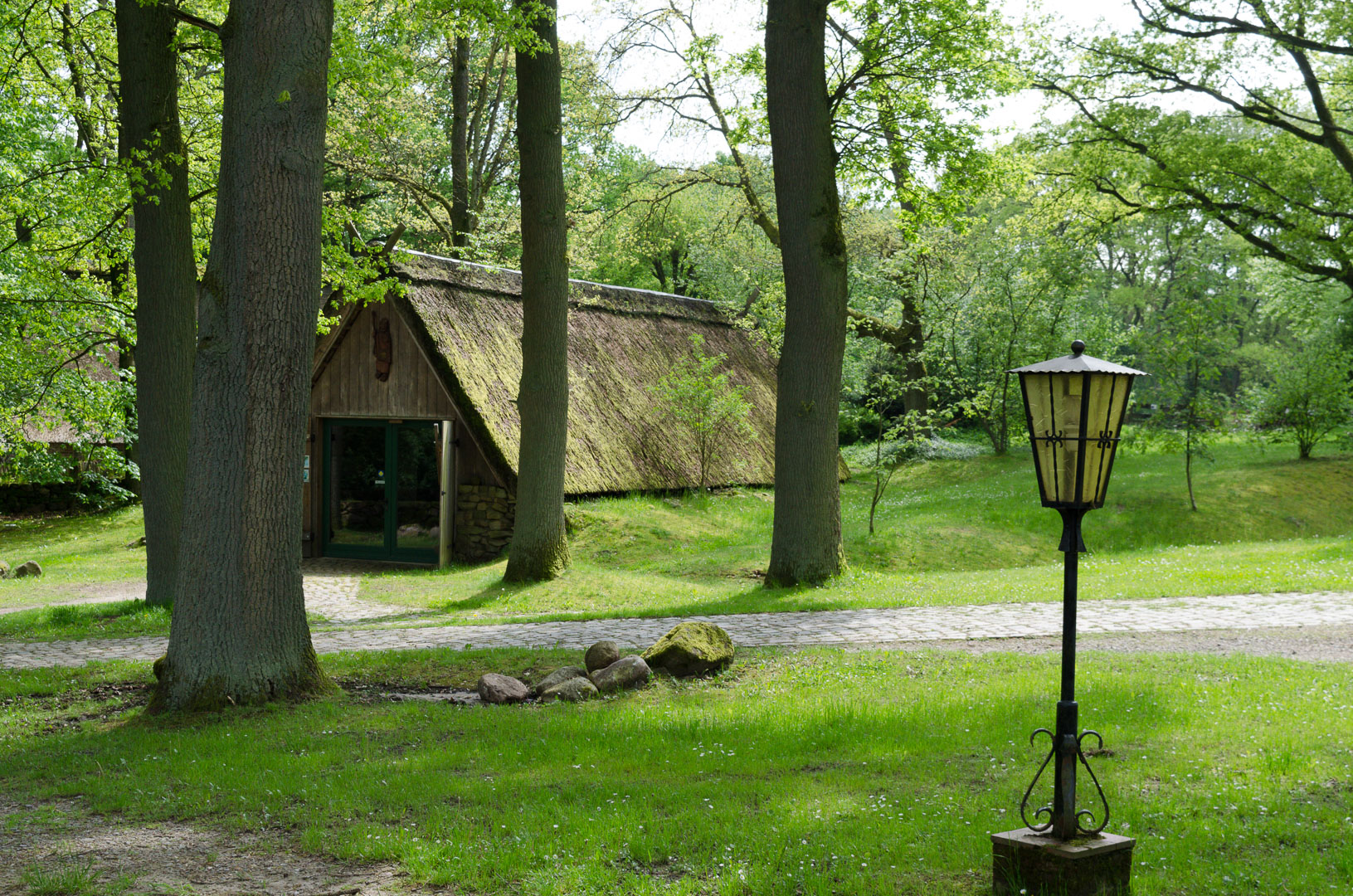 Einige Radfahrer und Wanderer machen hier Rast und stärken sich bei Kaffee und Kuchen in der „Milchhalle“. Wie es hier wohl zur Zeit der Heideblüte aussieht, wenn täglich tausende Besucher in dieses beschauliche Örtchen einfallen? Ich bin in diesem Moment froh, dass es Mai ist und ich mir das Idyll nur mit einigen wenigen Besuchern teile.